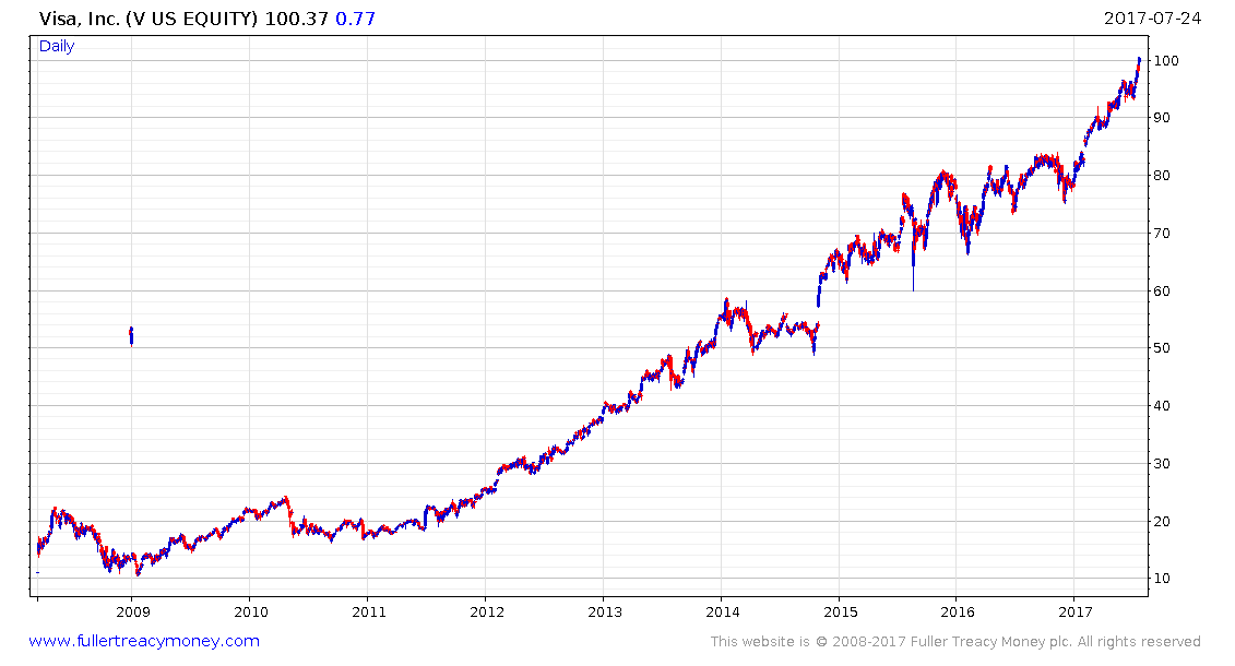 So how can you profit? Well if Visa’s stock price is anything to go by, the war on cash is a pretty good deal for payment processors: