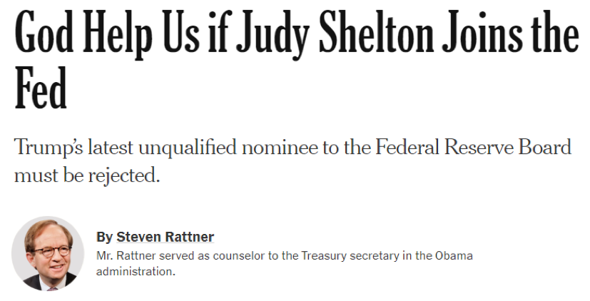 Whether Shelton gets into the Fed or not, whatever happens next will be illustrative of the environment we are living in.
