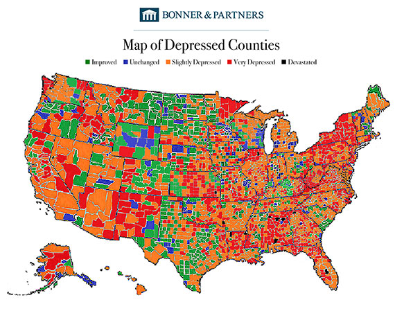 We asked our research department, headed by the able Joe Withrow, to comb through the U.S., county by county, and tell us where people were better off… and where they weren’t.