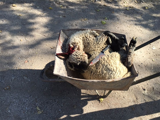 âShe grabbed one of lambs and, without hesitating, slit its throat. The kids all thought this was great entertainment. But I donât think the sheep were amused. They looked at us like murderers. And I felt guilty.