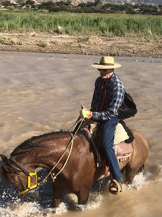 At Gualfin, Bill crosses the river on horseback