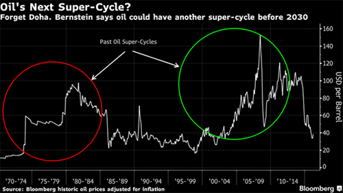 By the way, not everyone agrees that a producer price war will take prices lower. That’s what normally happens. And that’s what you’d want to prepare your portfolio for. But is there another “super cycle” in the oil market? One research firm thinks so.