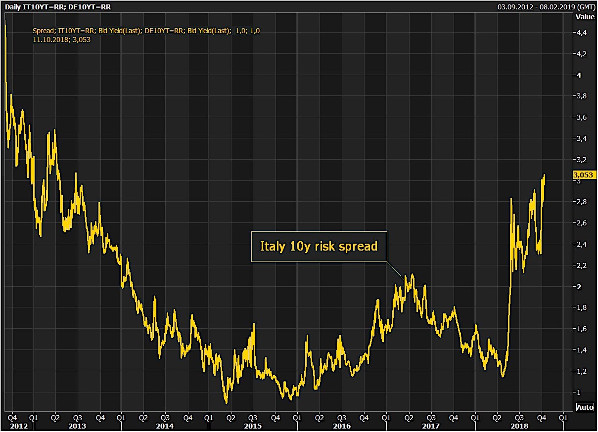 The Italian deputy PM, Matteo Salvini, said earlier this week that he was “absolutely sure” that this spread would not grow to 4%. A challenge that the “gentlemen” are willing to take him up on. At the time of writing, the spread has zoomed to 3.05%, and still has wind in its sails: