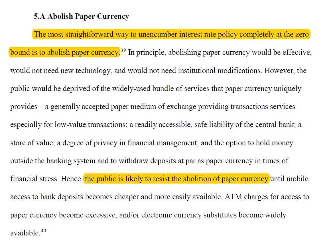 Don’t be deceived about the title. The paper is how about to implement a cash ban when you know people opposed to it. The key parts are sections 5a and 5c. And because you wouldn’t believe me if quoted from the paper, I’ve taken a screen shot from the paper and highlighted the relevant bits. Read it and weep.