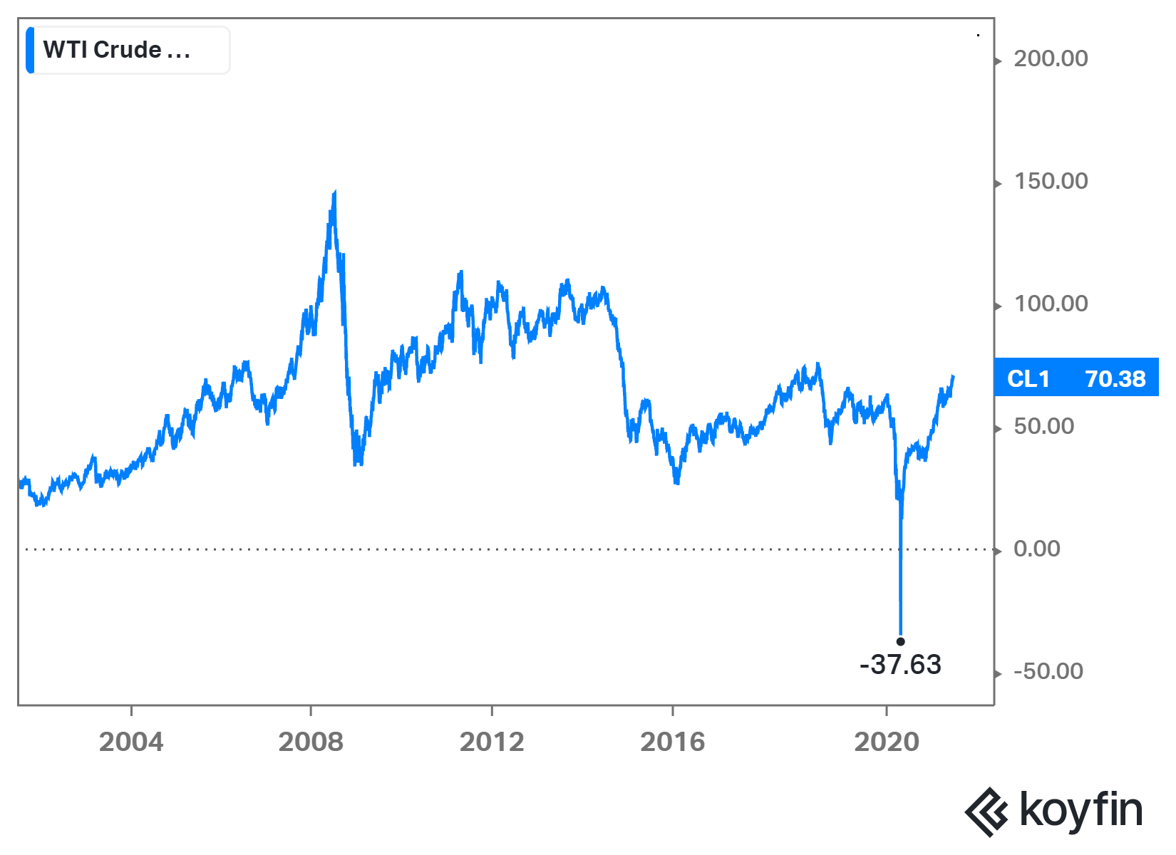 And a damn good thing that turned out to be, for April was an historic month for the oil market. While a year may have passed since, the bottom-right of this chart (WTI oil futures) is still astounding to look at: