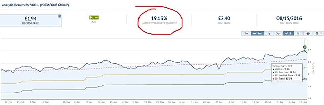 Alternatively, if you have the sort of stomach that doesn’t like being churned, the VQ score will tell you that BHP may not be right for you. You might prefer, based on your own personal comfort with risk and volatility, a share like Vodafone. Mind you, a lower VQ on Vodafone doesn’t make the share less risky. You can still lose money. But with a VW of 19, you’d set a tighter trailing stop on Vodafone, knowing that big price swings are more notable in Vodafone than they are Billiton.