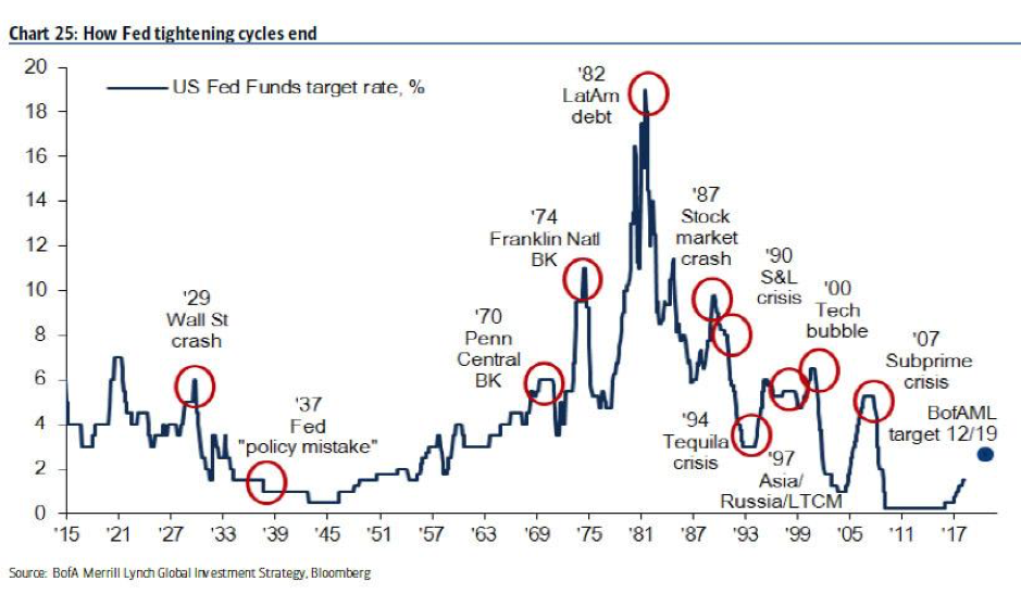 But it hasn’t been smooth sailing. Each time interest rates spiked on their 35-year downtrend, we saw some sort of financial crisis. Let’s take a look at the US experience, which dominates interest rates around the world.