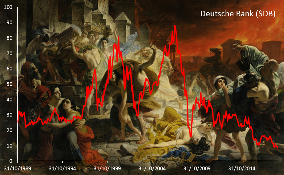 On the topic of bailouts and non-performing loans, we return to Deutsche Bank, which may need the former to cure the latter. As detailed yesterday, this global systemically important bank is plumbing near 30-year lows: