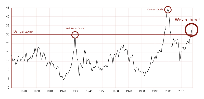 With a long term average of 16.8, that means US stock market is now almost 100% overvalued, according to this one indicator.