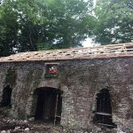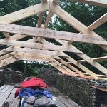 With help from the family, Bill constructs the frame for the new barn roof in Ireland