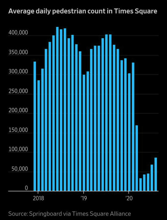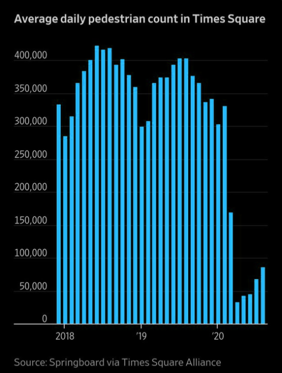 Could it be that the economic damage NYC suffers as a result of the WuFlu, makes it less attractive as a tourist destination? Or conversely, could the economic damage that the would-be tourists are suffering, make a trip to the Big Apple unaffordable?