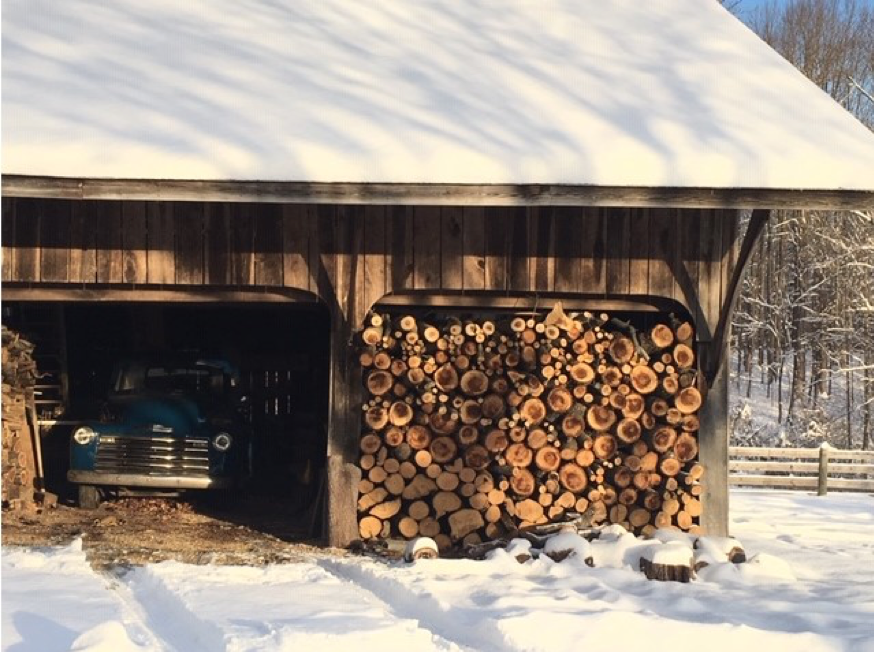On the family farm, Bill prepares for the snow with plenty of firewood