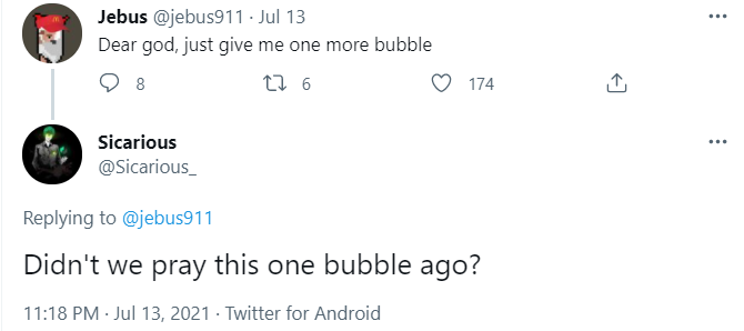 This amusing exchange on the crypto-corner of Twitter sums up the sentiment pretty well: