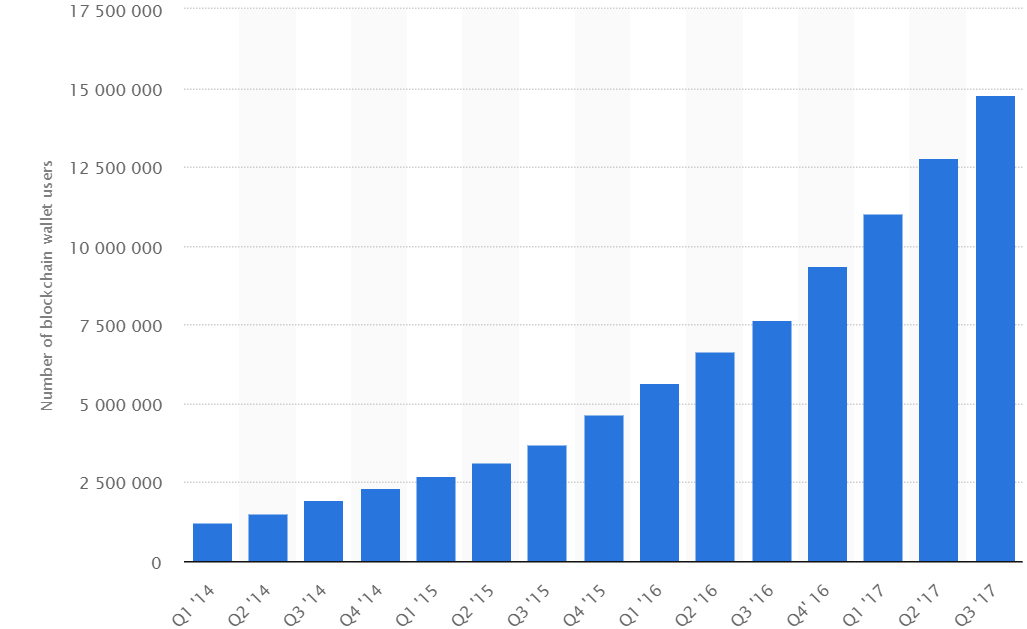 The number of bitcoin wallets is a fraction of its global potential, and growing steadily. The exponential trend is barely beginning.