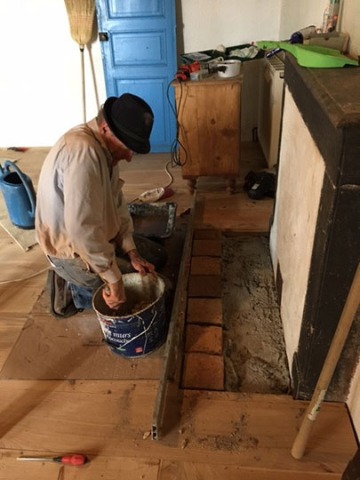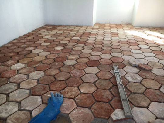 Meanwhile, we spent the weekend in mud. We laid clay tile – recycled from another old building – in our “chapel.”