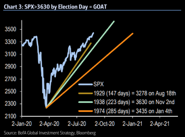 Bank of America recently published an interesting stat on just how rapid the US stockmarket has been rising since March. While we’ve often observed the breathless surge higher in stocks over the pond here at Capital & Conflict, the following chart gives some historical context which I hadn’t seen before.