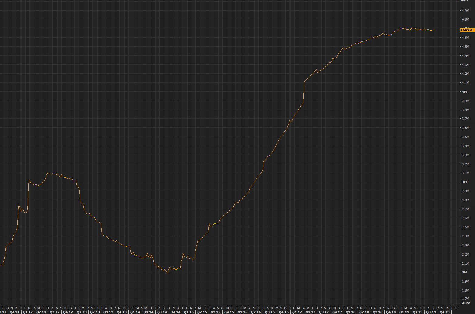 This is the level of the ECB’s balance sheet – the weight of wealth it has displaced is currently standing at almost €4.7 trillion. You’re not gonna see that number go down anytime soon. In fact, Super Mario could only pause its ascents for 9 months.
