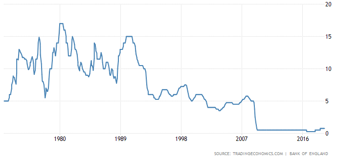 The UK is little better. The Bank of England has hiked rates twice since the crisis, and one of those was just to undo the rate-cut straight after Brexit.