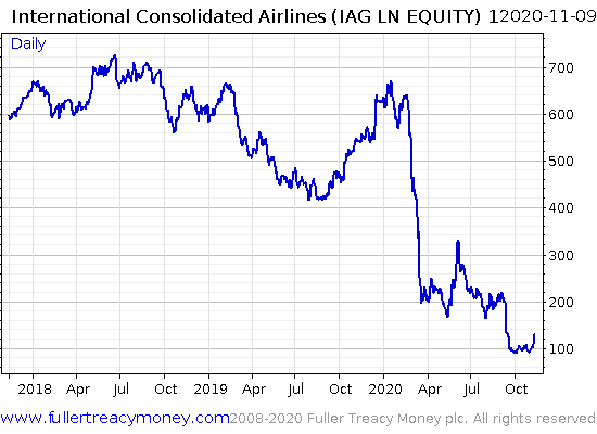 … while airline stocks like International Consolidated Airlines (parent company of British Airways) finally went up for once: