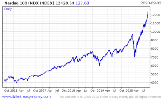 Tripling since the lows of 2016, the mighty Nasdaq index stands tall. The WuFlu has not been a hinderance; quite the opposite. It’s acted as an accelerant, like some kind of performance-enhancing drug. A steroid inflating the index at a speed and to a size never seen before.