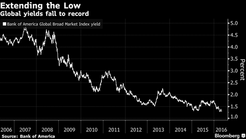 There are $9 trillion worth of government bonds with negative yields on this planet of ours. In Japan, all debt with a maturity of 15 years or less currently has a negative yield. Investors chasing a measly yield of 0.39% have to be willing to loan money to the Japanese government for 50 years.