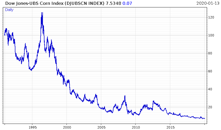 Corn is now so ignored that it now looks like a chart of Deutsche Bank: