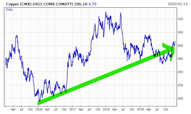 And even more intriguing, it wasn’t just energy that took off right at the beginning of 2016, but copper as well, which carries on cranking upwards.