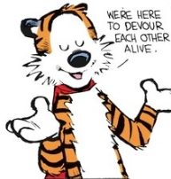 After a moment pondering, Hobbes responds in his cheerful, matter-of-fact manner: