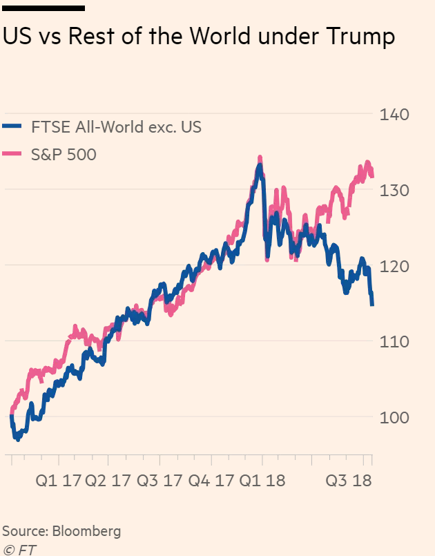 In a way, they already have. This chart from the Financial Times shows how stockmarkets around the world are falling while US stocks are climbing.