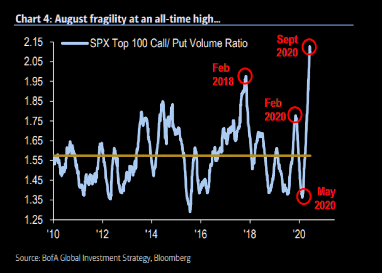 Much of the speculation in call options was directed at – surprise, surprise – tech stocks. When tech got hit hard a couple weeks back, those owning calls took a serious beating, something Charlie Morris described yesterday at The Fleet Street Letter Wealth Builder: