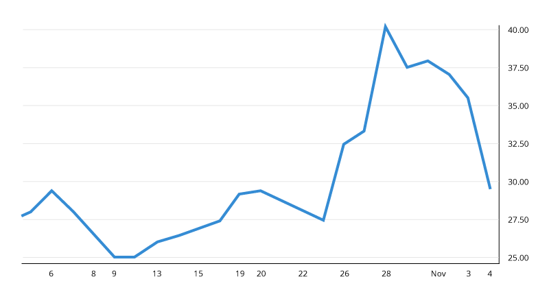 At the end of October, the VIX index, or the “fear index” as it’s also known since it measures expected volatility, reached its highest level since June. But yesterday, it fell sharply.