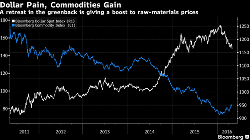 If you prefer your stories with pictures, have a look below. Is it a changing of the guard? Is it a top in the dollar and a bottom in the commodities market? It’s a big story.