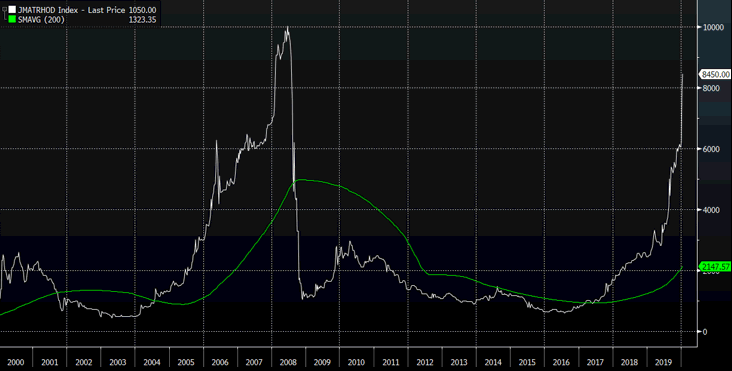 “Once a decade, let’s go crazy” is the rhodium investor’s motto. This thing trades more like a crypto than an inert metal: