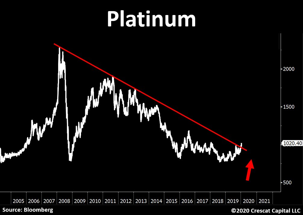 And lo and behold, just on Wednesday, platinum breaks out of a 12-year line of resistance: