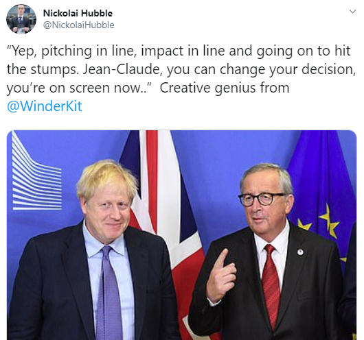 Kit Winder, our resident analyst and cricketer, was quick to come up with an analogy from his favourite game, with Jean-Claude Juncker appearing to be as umpire declaring the UK “out” of the EU.