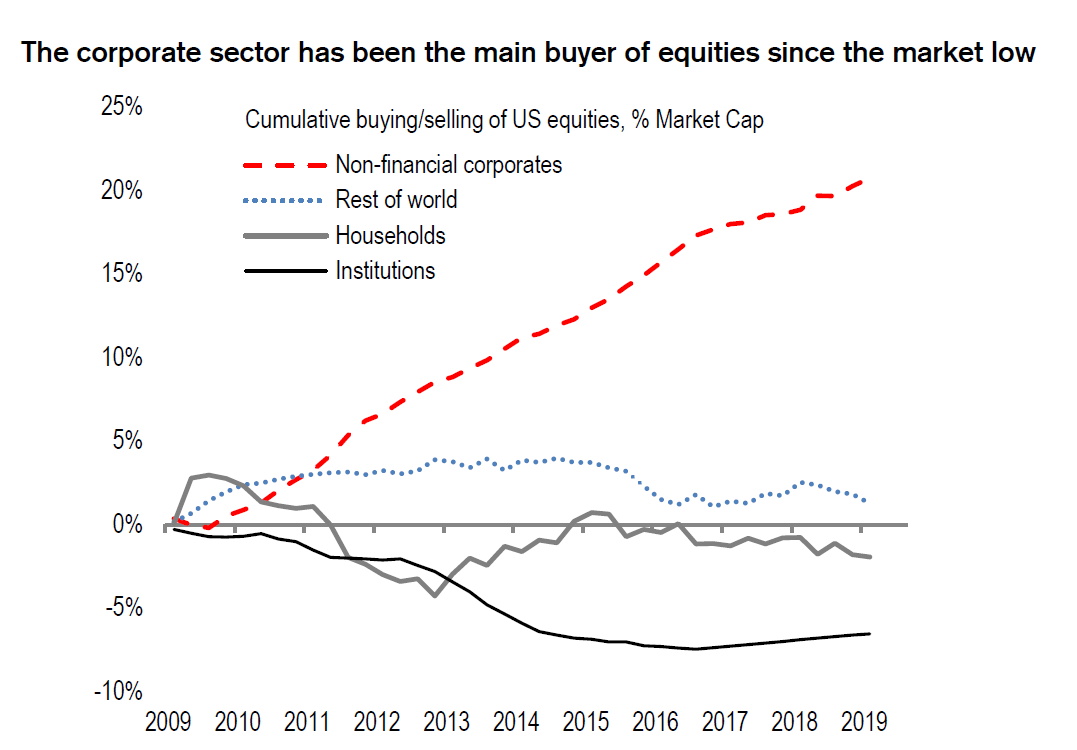 Not to mention that a key driver of this massive bull market hasn’t stopped. The US corporate sector continues to cannibalise their market by buying their own shares back: