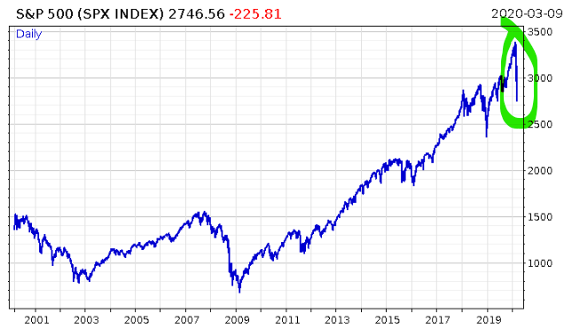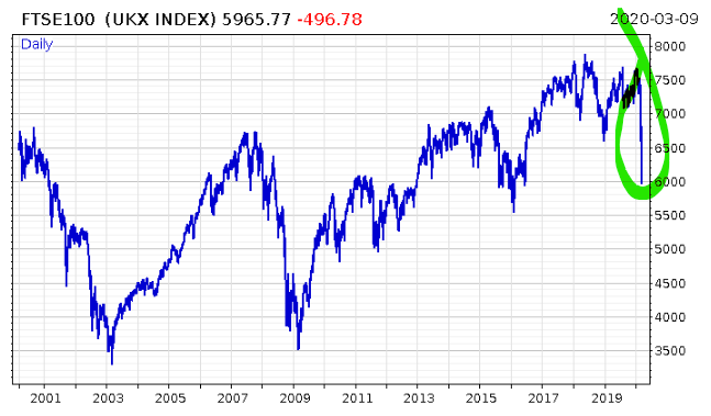 About a month ago, I was thinking coronavirus was having a similar impact on markets as the Millennium Bug, or Y2K, did. The Millennium Bug was similarly high profile, caused central banks to flood the financial system with cash “just in case”, and triggered significant expenditure from governments and companies hoping to avoid it. Importantly, that flood of cash helped cause the melt-up in the US stockmarket, and the dramatic boom and bust.