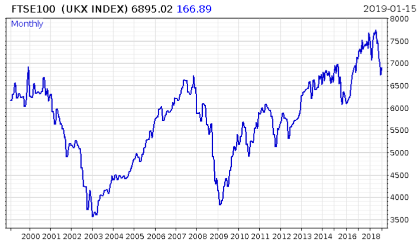You may notice from the chart above that the FTSE 100 is currently lower than it was in 1999. The next time you hear somebody recommend passive investment funds, remember that folks who followed that strategy and bought the FTSE before the millennium only made a capital gain a couple of years ago, and are currently underwater yet again.
