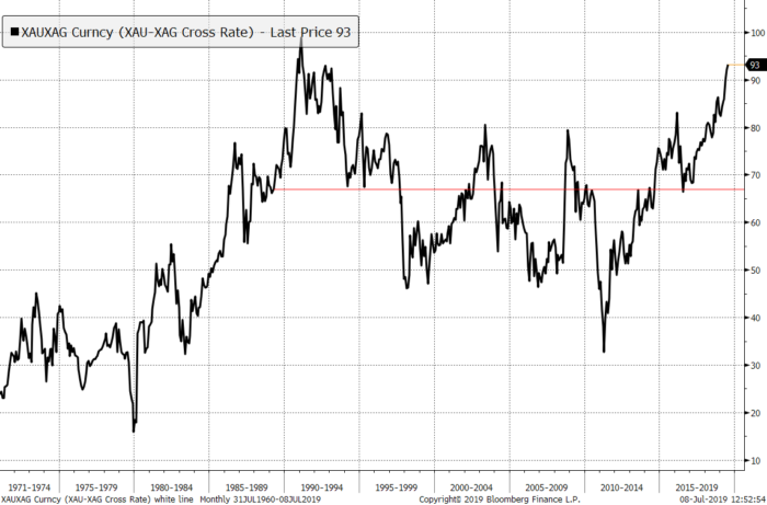 Source: Bloomberg – gold-to-silver ratio since 1970