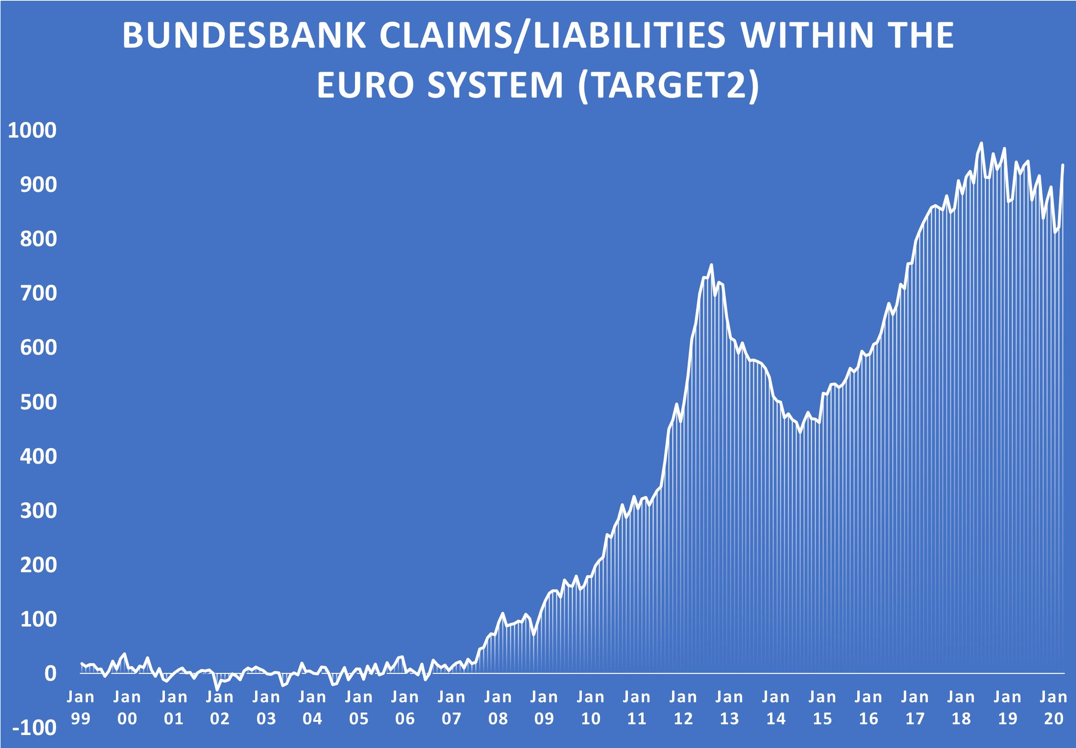 The corona-panic has caused cash to flood into Germany again, as expressed in the liabilities pooling at the German node of the ECB, the Bundesbank: