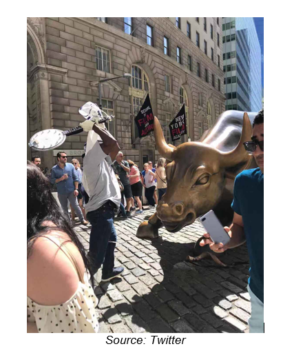It should be noted that the last time the Bull was vandalised was in 2008 and 2017. This is likely another indicator that what is labelled “capitalism” is being viewed increasingly negatively by the populous. As the wealthiest in society benefit from sustained central bank stimulus while everybody else is punished with low rates, it’s not hard to understand how this has happened.