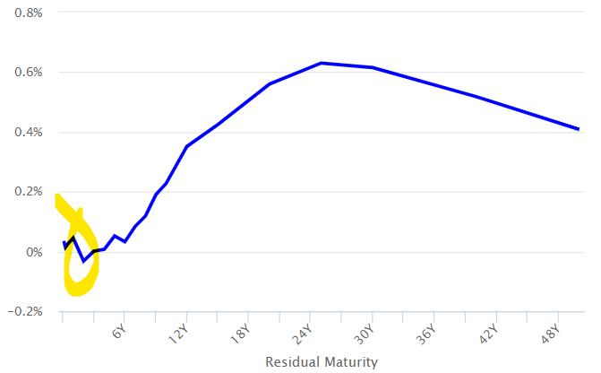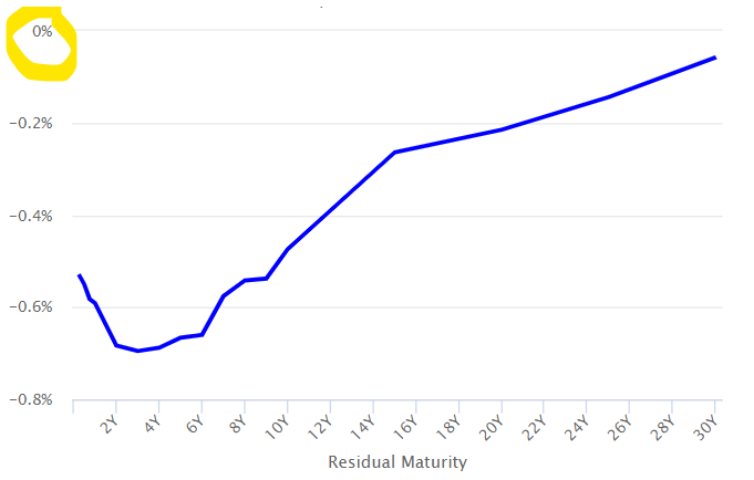 As I say, the battle over negative rates here in the UK has only just begun. In countries like Germany, the war is lost: take a look at its yield curve, the entire thing is underwater!