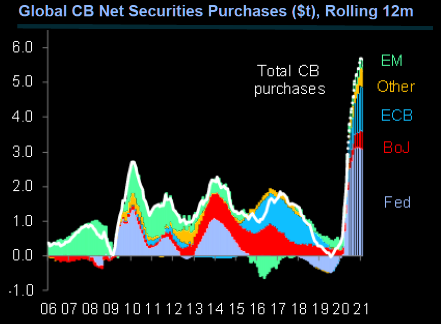 That’s almost five trillion pounds’ worth of money that’s been injected into the global financial system. Another strong force for gold, but once the global economy starts recovering, it’ll go into other assets as well…