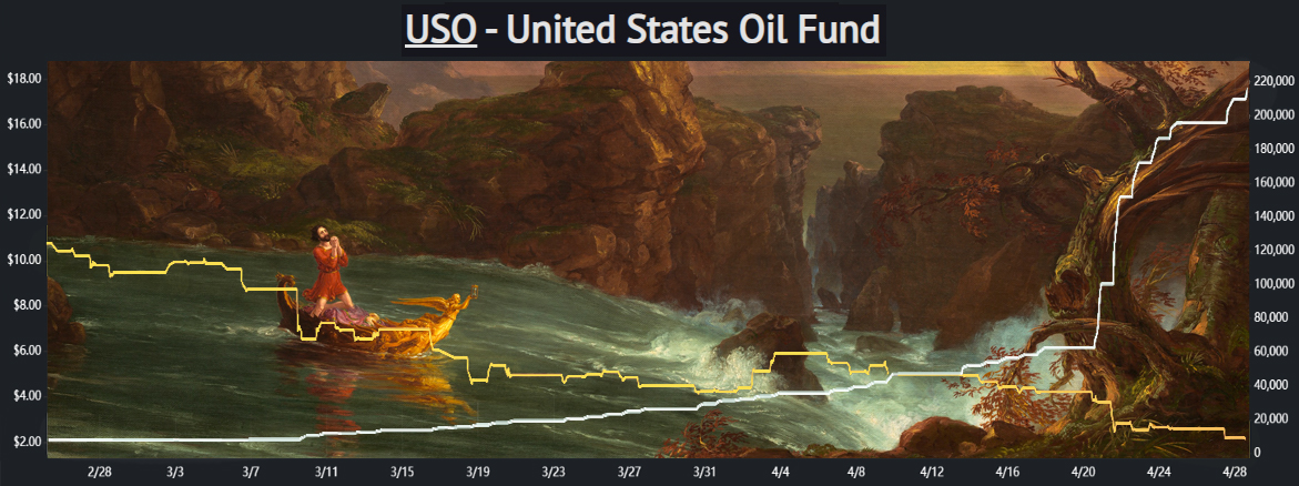 With the US oil futures – that promise of future oil – being worth less than zero last week, this put USO in a very precarious situation, and its price suffered very heavily as a result. But what makes the situation incredibly revealing is the chart of “da yoof” buying it while this has happened.