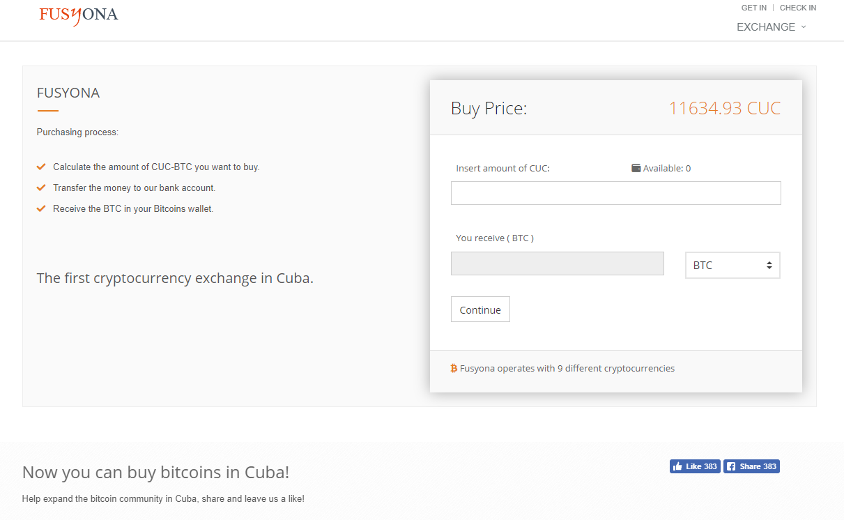 Fusyona.com homepage (translated). Note: CUC is the Cuban currency pegged to the dollar on a 1:1 basis, often used by tourists. Cuba’s domestic currency is the CUP and is unpegged. This other, much cheaper currency often goes unnoticed by those visiting, much to their expense.