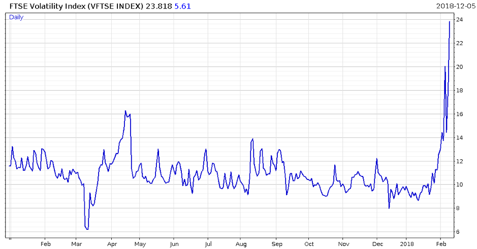 You may wonder why we focus on the US so much when we’re a UK-based research group. To illustrate just how interconnected financial markets are, take a look at the ripples this sudden explosion in American volatility created here at home…