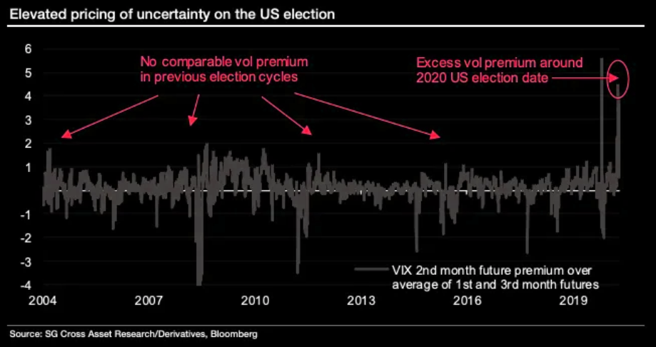 This futures contract has become so pricey because investors are buying it as insurance: they want a payout in the event volatility explodes in November, to offset any losses this would cause to their main portfolio.