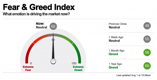 The CNN Money Fear & Greed indicator after the rate announcement. At the time of writing, it is now at 43 (fear).