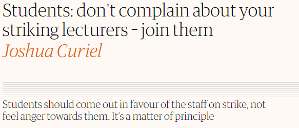 Yes, students. Don’t complain that the lecturers you have got into debt to purchase services from are not providing you with said services. Instead, support them in their protest to receive a boon that, unless you are very lucky, will not be afforded to you by merit of its inherent unsustainability.